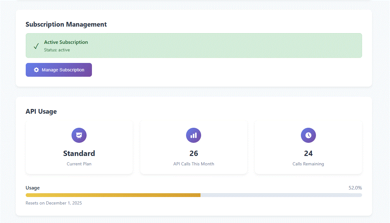 Access new features, manage subscription, monitor storage space, projects and API usage on your personal dashboard.